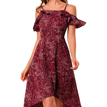 Robe mi-longue trapèze décontractée pour femmes avec bretelles spaghetti à volants asymétriques manches florales hautes et basses