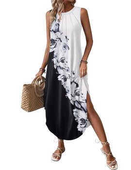 Robe de plage d'été décontractée à fleurs pour femmes avec jupe longue plissée et poches robe gilet imprimée pour la plage et un usage quotidien